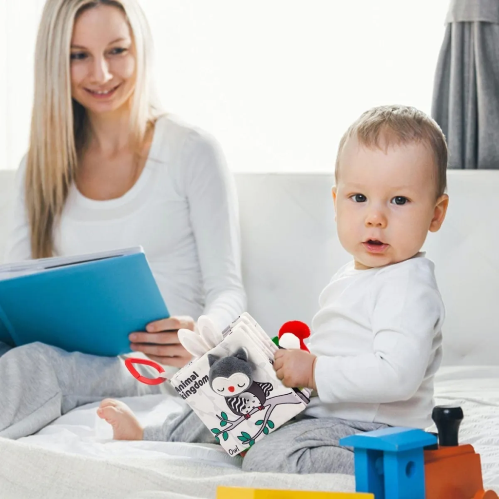 Un libro que el bebé puede morder, arrugar, jalar y explorar sin que nadie se preocupe. Fabricado en tela suave con costura reforzada, este libro sensorial tiene páginas con diferentes texturas, combinaciones de blanco y negro para estimular la visión, un sonajero incorporado tipo “BB” y las adorables colas 3D de animales que tanto llaman la atención de los bebés desde los primeros meses.